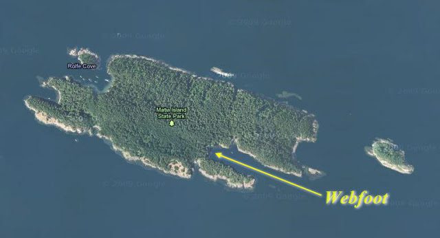 After everything was ready to go we drove to the ramp to put Webfoot into the water. The aft end was floating just fine; only the boat wouldn’t budge from the trailer. We pushed and pulled to no avail. No matter how far we backed into the water the bow kept resting on the V-shaped cushion that stops the boat from moving farther forward. The entire boat was off the trailer except the upper bow section. Captain Mike did a sort of backwards “mac-bump” (a real “mac-bump” is done by driving forwards with the boat on the trailer and then slamming on the brakes to slide the boat forward on the trailer). After several “bumps” we were finally able to launch and ready to go by noon!