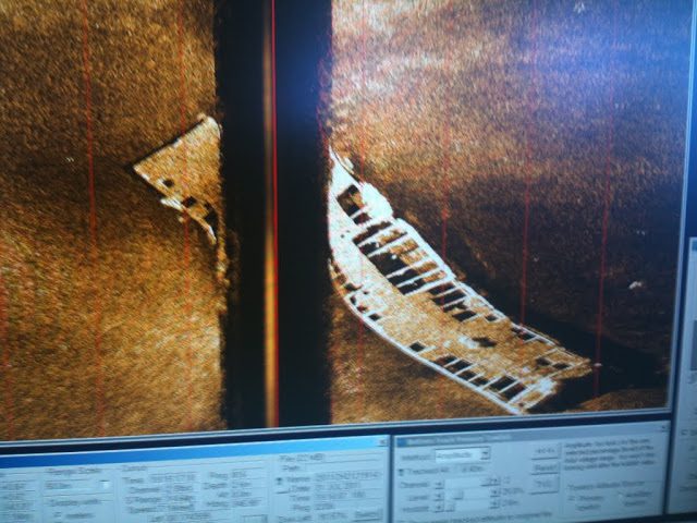| Sidescan Sonar image of barge in Fish Haven off Mississippi |
