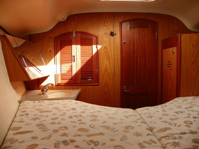 | Camille’s V-berth (guest bedroom) looking aft |