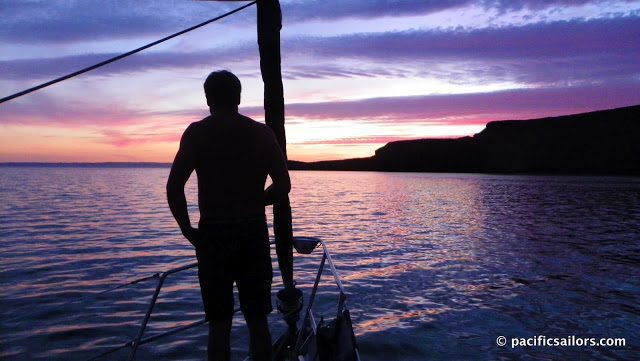 On passages we always wear our safety harnesses and are clipped into jack-lines that run the length of the boat. When it gets rough we wear our hydrostatic life-vests with harness. We also have some old life-vests that I just couldn’t bring myself to get rid of when we moved aboard. They are now our dinghy life-vests. If the dinghy flips and everything goes into the drink they won’t inflate suddenly like the hydrostatic vests would. We also don’t have to worry about them being stolen. They make excellent seat cushions and work as a spray shield to keep our butts somewhat dry.