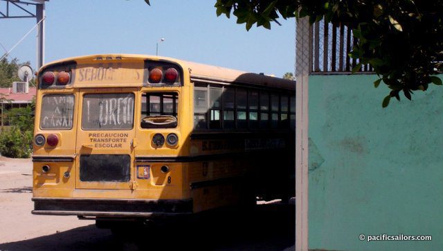 ENSENADA BLANCA – Staying in an anchorage in front of a resort has its perks. Not only do we get to use the pool, pool bar, showers and wifi, but also their shuttle service. Since there isn’t a marina or decent anchorage in Loreto, it can be tough to get to and from town to shop for groceries. Taxi rides are expensive, buses rare (and it’s a long, hot walk from the resort to the main road), and rental cars are only available in town.