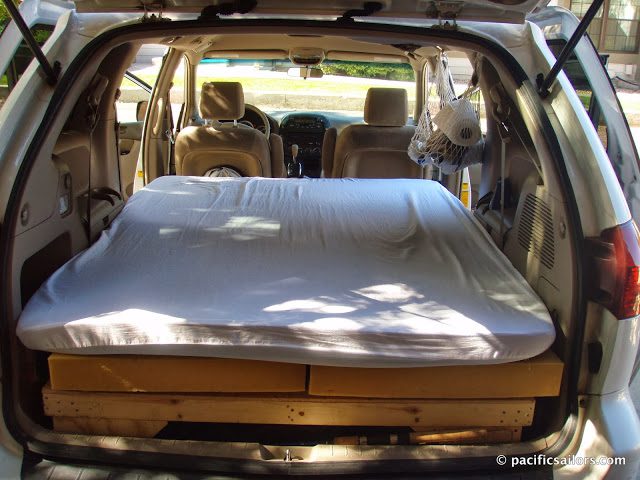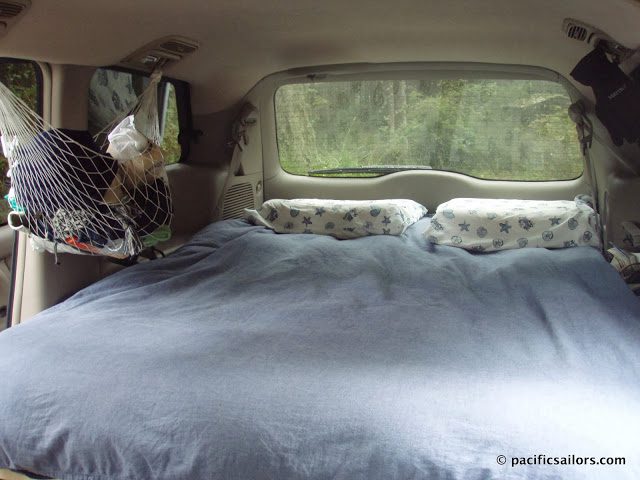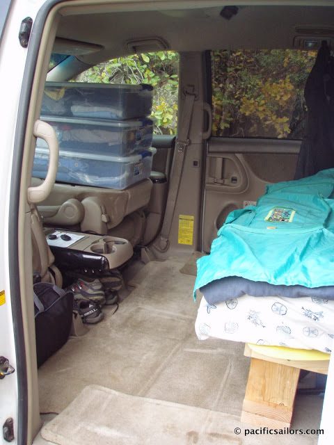 About a year ago, we had to fly up to California from Mexico and rented a minivan for a month to run errands and do some exploring. With the seats folded down, we squeezed in an air mattress, and it made a great little camper van. Plenty of headroom, space for our stuff, and decent gas mileage. So we decided a minivan would be the best compromise. We chose the Toyota Sienna, and it had to be newer than 2004 because prior to this, the rear seats didn’t fold down flat. The Sienna boasts 20-27 miles per gallon, but we consistently get about 22 mpg. Always. Not as good as a sedan, but good enough.