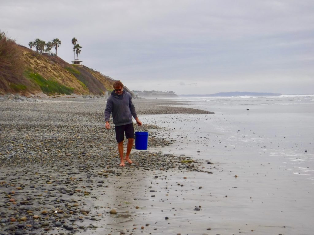 - Fill a shallow vase 1/4 full of beach rocks (we used a variety of vases)