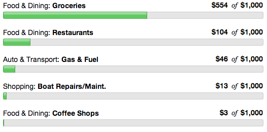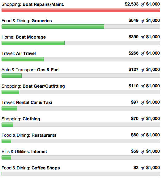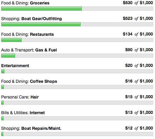 - Restaurants This month was my birthday so there is a big chunk that went to that. The rest was eating out when we had the boat so torn apart that we could not cook.