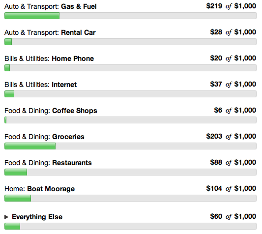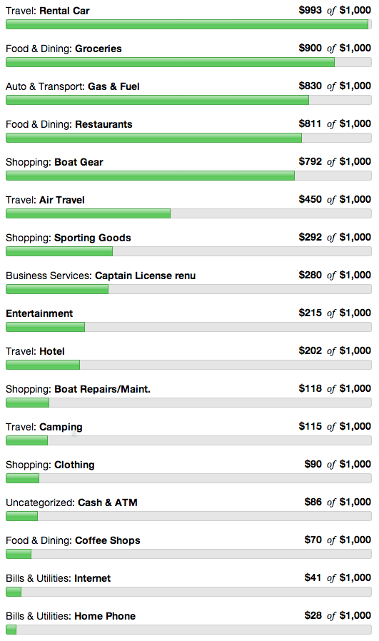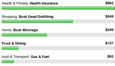 - Everything Else This month we paid for our bi-annual auto insurance, internet fees, and the big chunk is for our physicals for the renewal of our captain’s licenses.