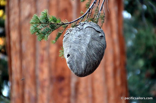 Bee hive and Sequoia tree
